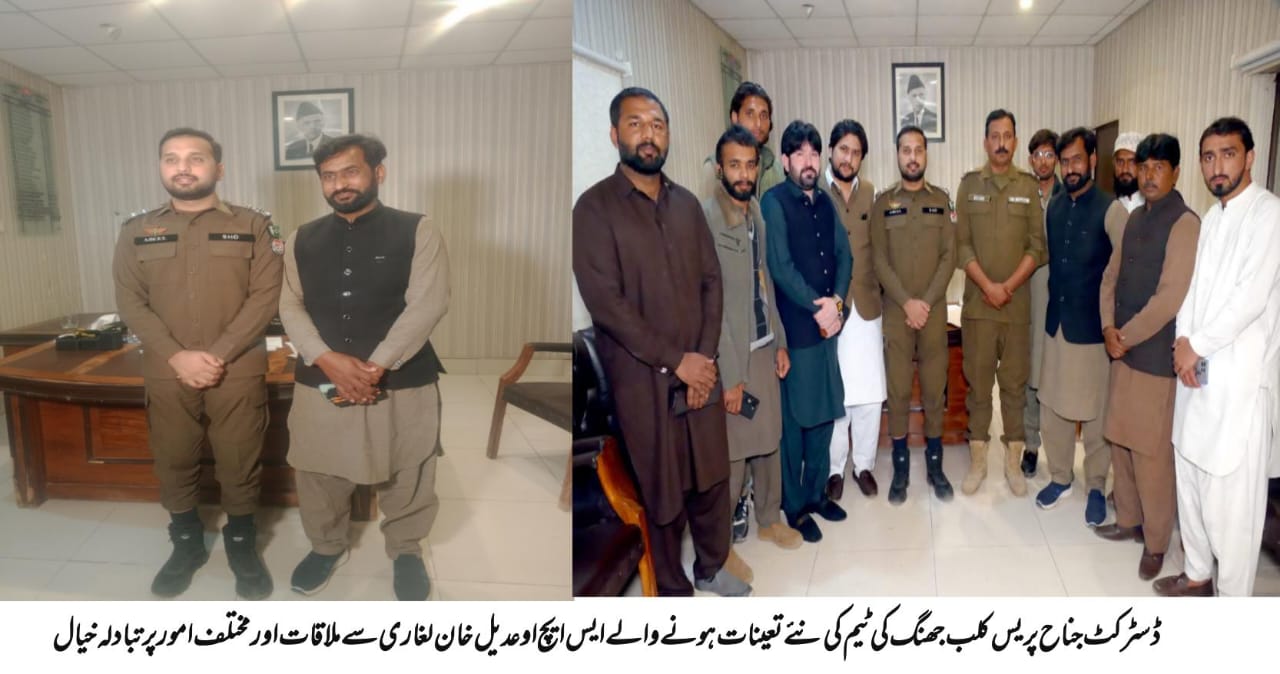وریام والاجھنگ (شیخ غلام مصطفیٰ) ایس ایچ او تھانہ وریام والا عدیل خان لغاری سے ڈسٹرکٹ جناح پریس کلب جھنگ کے ممبران کی ملاقات،نئے تعینات ہونے والے ایس ایچ او کو خوش آمدید کہا اور ان کی تعیناتی کو علاقے میں امن و امان کے قیام کے لیے خوش آئند قرار دیا، رپورٹ محمد رمضان سیال بیوروچیف جھنگ آن لائن نیوز نیٹ ورک