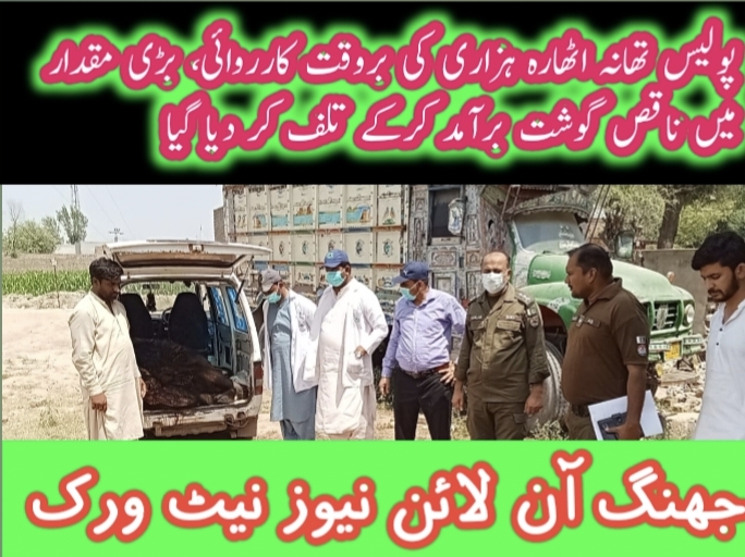 اٹھارہ ہزاری (شیخ غلام مصطفٰی) پولیس تھانہ اٹھارہ ہزاری مہر اخلاق احمد نول کی اطلاع ملنے پر بروقت کارروائی،200 کلو ناقص گوشت برآمد،گوشت مچھلی بازار جھنگ میں فروخت ہونا تھا،پولیس نے بروقت کارروائی کر کے تلف کروا دیا.. شیخ غلام مصطفٰی سی ای او و چیف ایڈیٹر جھنگ آن لائن نیوز 923417886500 +
