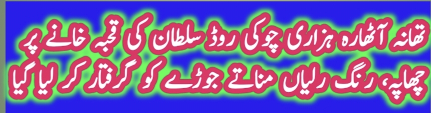 اٹھارہ ہزاری (شیخ غلام مصطفٰی) ایس ایچ او تھانہ آٹھارہ ہزاری مہر اخلاق احمد نول کی زیر نگرانی انچارج چوکی روڈ سلطان چمن عباس کی اپنی ٹیم کے ہمراہ قحبہ خانے پر چھاپہ، رنگ رلیاں مناتے جوڑے کو گرفتار کر لیا گیا