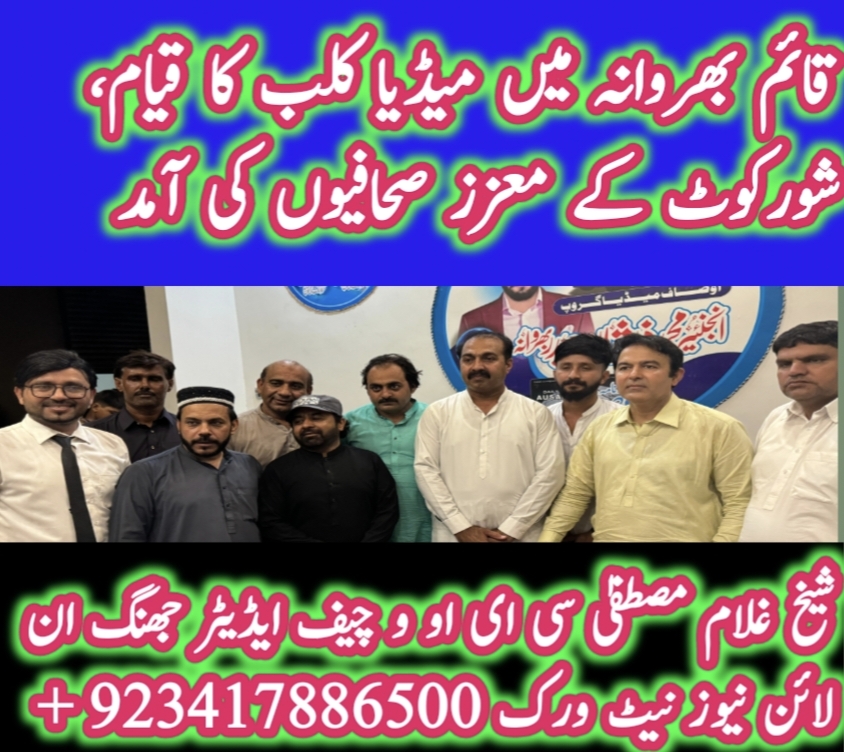 قائم بھروانہ /شورکوٹ (شیخ غلام مصطفیٰ) میاں محمد عاصم رفیق جنجوعہ المعروف جنجوعہ گرافکس اینڈ شادی کارڈسنٹر قائم بھروانہ والے نے میڈیا سے گفتگو کرتے ہوئے کہا کہ میں نے بطور نائب امیر جماعت اسلامی پی پی 128 ذمہ داری پر کافی عرصہ کام کیا ،اب اپنی نجی مصروفیات کی وجہ سے جماعت کی بطور نائب امیر ذمہ داری اور رکنیت سے لاتعلقی کا اعلان کرتا ہوں، رپورٹ حکیم طاہر محمود جنجوعہ
