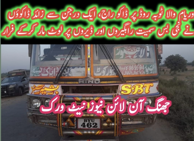 وریام والا ٹوبہ ٹیک سنگھ روڈ پر ڈاکو راج ،ایک درجن سے زائد ڈاکوؤں نے وریام والا سے لاہور جانے والے نجی کمپنی کی بس سمیت راہگیروں اور ڈیروں پر جی بھر کر لوٹ مار کرکے فرار، مبینہ طور تھانہ چٹیانہ کی حدود میں ناکہ لگا کر لاکھوں روپے کی نقدی، قیمتی اشیاء سے محروم کر دیا گیا، رپورٹ شوکت علی