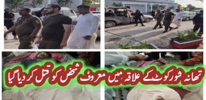 شورکوٹ(شیخ غلام مصطفٰی) تھانہ شورکوٹ سٹی کے علاقہ #کھرانوالہ میں دن دیہاڑے معروف نوجوان کو دو نامعلوم افراد فائرنگ کرکے قتل کر دیا ،اطلاع ملتے ہی ڈی ایس پی شورکوٹ مہر محمد حیات سرگانہ ،ایس ایچ او تھانہ شورکوٹ سٹی فیصل رزاق کاہلوں موقع پر پہنچ گئے ،رپورٹ مہر ریاض موہانہ بیورچیف جھنگ آن لائن نیوز