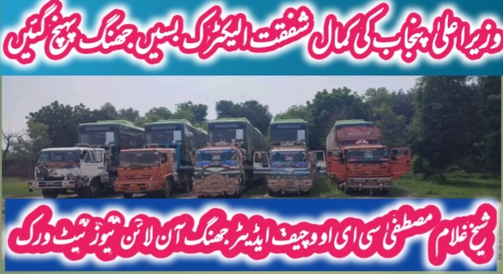 جھنگ(شیخ غلام مصطفیٰ) سی ایم پنجاب محترمہ مریم نواز شریف صاحبہ کی شفقت پر الیکٹرک بسیں چناب کالج جھنگ میں 5پہنچ چکی ہیں، روٹ تیار کیے جارہیے ہیں-