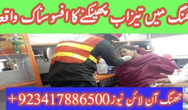 جھنگ (شیخ غلام مصطفٰی) جھنگ میں گھریلو جھگڑے پر شوہر نے اپنی تیس سالہ بیوی پر تیزاب پھینک دیا، ریسکیو 1122 جھنگ کی بروقت کارروائی ،متاثرہ خاتون کو ہسپتال منتقل کردیا گیا ،ملزم گرفتار، رپورٹ، ڈاکٹر غلام اللہ فاروقی ،میاں بابر مصطفٰی ،انیس احمد پوری نمائندہ خصوصی جھنگ آن لائن نیوز