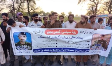 جھنگ (آصف سیماب جنجوعہ) ایس ایس پی پٹرولنگ ہائی وے پولیس فیصل آباد ریجن مرزا انجم کمال، ڈی ایس پی مظہر فاروق پی ایچ پی ڈسٹرکٹ جھنگ کے حکم پر، انچارج پٹرولنگ پولیس پل اصحابہ میاں عبد الرزاق جنجوعہ کی زیرنگرانی روڈ سیفٹی آگاہی مہم کا انعقاد، کم سن ڈرائیور ،بغیر لائسنس کے گاڑی نہ چلانے سمیت ہیلمٹ کے استعمال کے متعلق آگاہی فراہم کی گئی، رپورٹ زیشان حیدر سیال ،انیس احمد پوری ،میاں بابر مصطفٰی بیورچیف جھنگ آن لائن نیوز