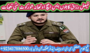 شورکوٹ (شیخ غلام مصطفٰی) ڈی پی او جھنگ ملک طارق محبوب نے کرائم فائٹر آفیسر سب انسپکٹر فیصل رزاق کاہلوں کو ایس ایچ او تھانہ شورکوٹ سٹی تعینات کردیا ،عوامی و سماجی اور تجارتی حلقوں کی جانب سے ایک بار پھر تعیناتی کا خیر مقدم کیا جا رہا ہے، رپورٹ حکیم طاہر محمود جنجوعہ ،جاوید اقبال ملاح،مہر ریاض موہانہ بیورچیف جھنگ آن لائن نیوز